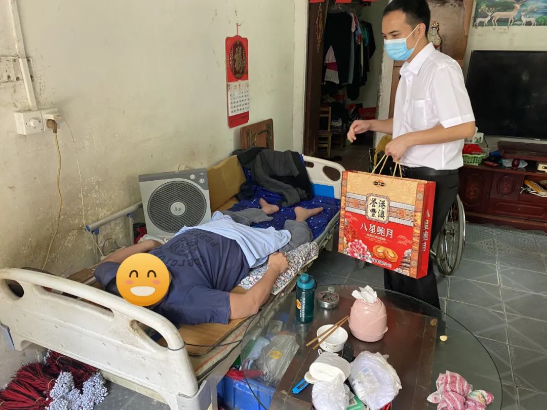 走訪中,慰問人員為敬老院老人和困難家庭送上誠摯的問候與節(jié)日的祝福,為他們送去中秋月餅、食用油、大米等慰問品,并為敬老院老人送上中秋慰問金。