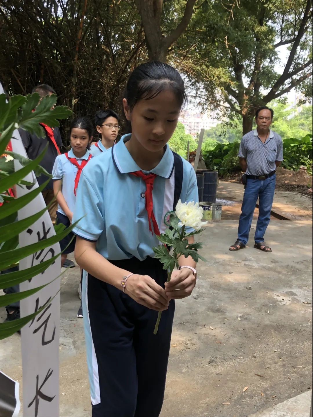 少先隊員代表、中心小學(xué)學(xué)生黃可馨為烈士們獻(xiàn)詞:作為未來祖國接班人,身上流淌著的是先輩們的紅色基因,傳承的是紅色的革命的理想,應(yīng)該養(yǎng)成文明進(jìn)取的習(xí)慣,學(xué)習(xí)好各門文化知識,掌握好各種科學(xué)技術(shù),完善自己的思想,凈化自己的心靈。維護(hù)民族尊嚴(yán)和國家榮譽(yù),將國家的明天建設(shè)得更加美好!