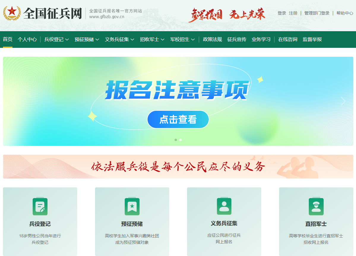 《中華人民共和國兵役法》明確國家實行兵役登記制度,每名男性青年在年滿18周歲時都要履行兵役登記義務。當年12月31日以前年滿17周歲未滿18周歲的男性公民本人自愿的,也可進行初次兵役登記。