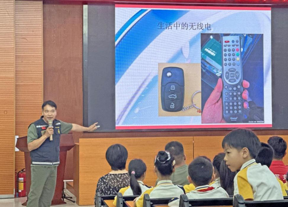 西區(qū)中心小學(xué)內(nèi),省、市最美退役軍人結(jié)合自身經(jīng)歷,講述軍人忠誠擔(dān)當(dāng)與“??招l(wèi)士”王偉等英雄故事。隨后,無線電運動協(xié)會帶來一堂科普課,學(xué)生們嘗試摩斯密碼收發(fā)操作,在“滴答”聲中感受科技安全的重要性。