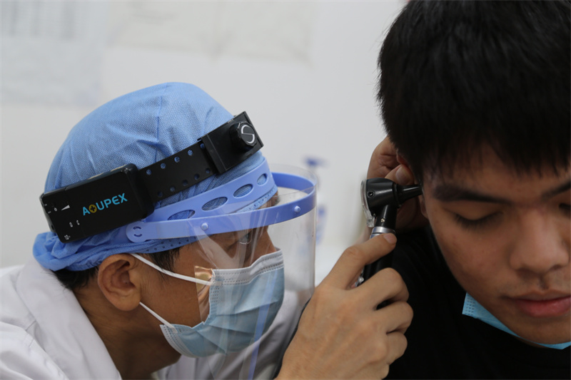 ▲醫(yī)護(hù)人員嚴(yán)格按照《應(yīng)征公民體格檢查標(biāo)準(zhǔn)》開展體檢