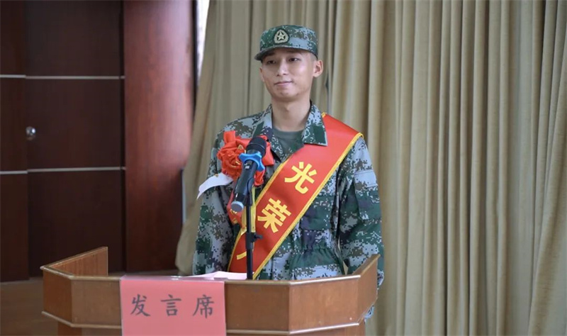 ▲呂煒康代表新兵作表態(tài)發(fā)言。通訊員 提供