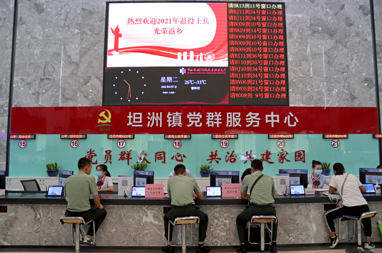 進(jìn)入9月份,坦洲鎮(zhèn)陸續(xù)迎來返鄉(xiāng)報(bào)到的2021年秋季退役士兵。為進(jìn)一步提升服務(wù)水平,切實(shí)讓返鄉(xiāng)退役士兵感受到家鄉(xiāng)的溫暖和社會的尊崇,坦洲鎮(zhèn)公共服務(wù)辦公室、退役軍人服務(wù)中心聯(lián)合鎮(zhèn)人民武裝部、公安分局、人社分局等部門,提前謀劃、精心組織,想退役士兵之所想,急退役士兵之所急,竭誠為戰(zhàn)友們提供溫馨便捷的“一站式”服務(wù)。
