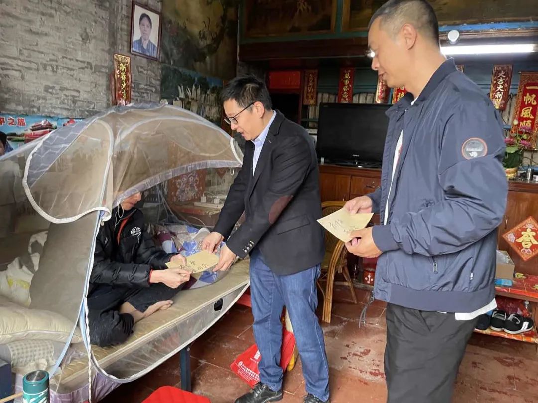 ▲沙溪鎮(zhèn)副鎮(zhèn)長(zhǎng)黃家樂(lè)帶隊(duì)到港園村走訪(fǎng)慰問(wèn)困難退役軍人