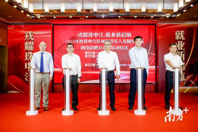 11月15日上午,“戎耀珠中江 就業(yè)新啟航”2022年度珠中江區(qū)域退役軍人及隨軍家屬網(wǎng)絡(luò)招聘活動(dòng)啟動(dòng)儀式在中山線上線下同步舉行。中山市退役軍人事務(wù)局局長(zhǎng)黃志國(guó)、副局長(zhǎng)林良旭、珠海市退役軍人事務(wù)局副局長(zhǎng)趙學(xué)群、江門市退役軍人事務(wù)局副局長(zhǎng)梁德祥等領(lǐng)導(dǎo)與企業(yè)代表出席了啟動(dòng)儀式。