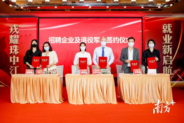 企業(yè)與退役軍人代表進(jìn)行現(xiàn)場(chǎng)簽約。 招聘活動(dòng)開展以來(lái)成效明顯,在啟動(dòng)儀式現(xiàn)場(chǎng),中山愛(ài)爾眼科醫(yī)院、廣東微觀科技有限公司、廣東凱世達(dá)農(nóng)業(yè)科技有限公司三家企業(yè)代表與就業(yè)對(duì)接成功的退役軍人代表進(jìn)行現(xiàn)場(chǎng)簽約。 《珠中江區(qū)域退役軍人就業(yè)創(chuàng)業(yè)戰(zhàn)略合作協(xié)議》簽約現(xiàn)場(chǎng)。