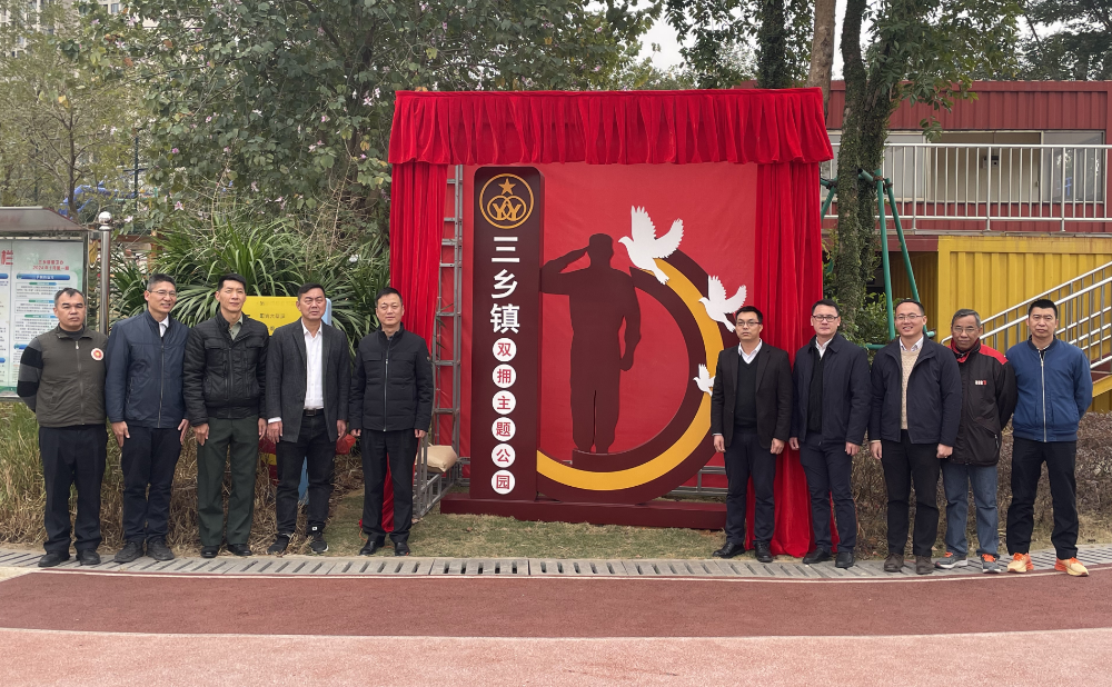為進(jìn)一步營造“擁軍優(yōu)屬、擁政愛民”的濃厚氛圍,推進(jìn)雙擁文化深入人心,凝聚黨政軍民參與創(chuàng)建雙擁模范城的強(qiáng)大合力,中山市三鄉(xiāng)鎮(zhèn)依托南部兒童公園,打造三鄉(xiāng)鎮(zhèn)首個雙擁主題公園。1月26日下午,三鄉(xiāng)鎮(zhèn)舉行雙擁主題公園揭牌儀式。 三鄉(xiāng)雙擁主題公園揭牌儀式現(xiàn)場。