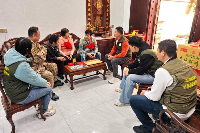 慰問現(xiàn)場,慰問組為軍屬佩戴光榮紅花,宣讀喜報(bào),詳細(xì)介紹士兵在部隊(duì)的優(yōu)異表現(xiàn),對軍屬們默默支持國防事業(yè)、鼓勵(lì)親人建功軍營表示衷心感謝。接過喜報(bào)的家屬們臉上洋溢著自豪與喜悅,表示將繼續(xù)做好堅(jiān)強(qiáng)后盾,叮囑孩子在部隊(duì)安心服役、再立新功。