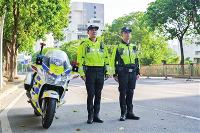 鐵騎隊(duì)員李劍鋒(左)、繆輝航(右)退伍從警后繼續(xù)發(fā)光發(fā)熱。