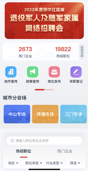 ▲掃碼進入2022年度珠中江區(qū)域退役軍人及隨軍家屬網絡招聘會。