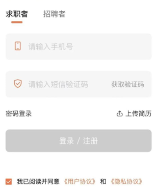 2、注冊賬號 未注冊登陸的求職者將自動跳轉到注冊頁面,完善相關信息后點擊【完成】按鈕完成注冊流程。