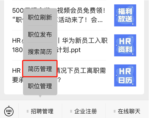 ▲發(fā)布職位流程 3、管理招聘 關注公眾號【國際人才網企業(yè)版】,在【招聘管理】菜單欄找到【簡歷管理】,即可查看主動應聘的求職者,并可發(fā)起溝通或邀約面試。