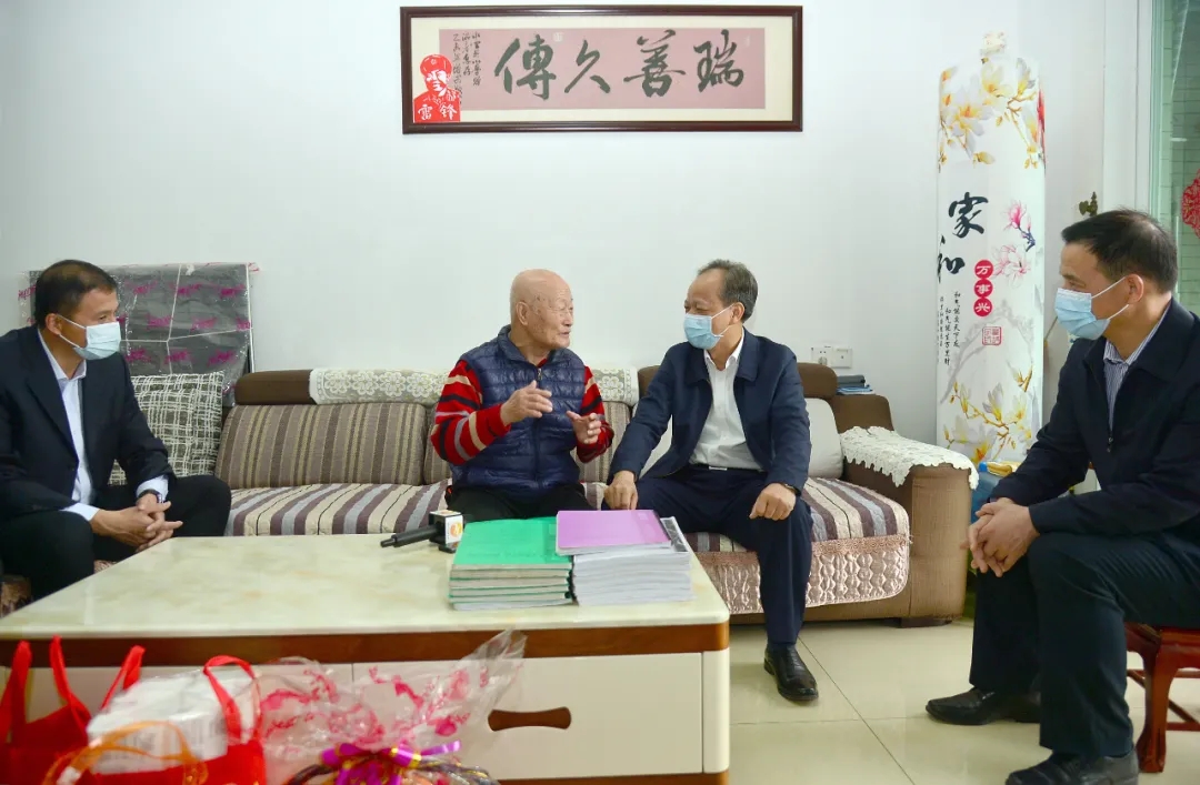 “這是我們這次黨代會報告的金句,我都記下來了。要用'虎 '的精神,為黨的事業(yè)奉獻(xiàn)自己的一生?!笨蛷d桌面上放著洪瑞久一摞筆記本,隨便翻開一本,里面密密麻麻記錄了市第十五次黨代會的內(nèi)容?!白D】担兄x您!學(xué)習(xí)得非常認(rèn)真!您退休不褪色,退休不退崗,努力培養(yǎng)后一代,發(fā)揮余熱,非常用心!”郭文海拉住洪瑞久的手,代表市委、市政府感謝他為黨和人民事業(yè)發(fā)展作出的貢獻(xiàn),關(guān)切詢問老人的生活情況,贊揚他退休后熱心社區(qū)公益、弘揚紅色文化,祝福他和家人身體健康、幸福美滿,并送上慰問金。