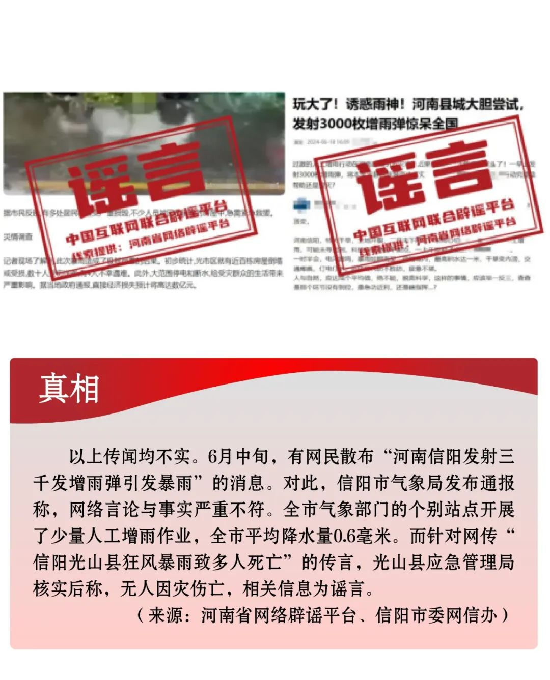 謠言7:河南信陽(yáng)發(fā)射三千發(fā)增雨彈引發(fā)暴雨?信陽(yáng)光山縣狂風(fēng)暴雨致多人死亡?