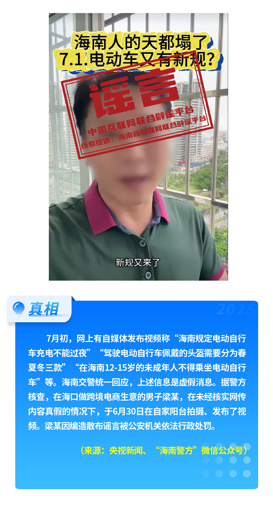 有人重新翻炒“醫(yī)保‘個人賬戶’將全部取消”舊謠,故意歪曲醫(yī)保改革真實內(nèi)涵,嚴重誤導(dǎo)公眾對醫(yī)保改革政策的理解。“有專人上門服務(wù)激活醫(yī)保碼”,披著“公共服務(wù)”的外衣,實有詐騙之嫌和安全風(fēng)險。憑空捏造“海南規(guī)定電動自行車充電不能過夜、頭盔分三季”這一“奇葩規(guī)定”,以“新規(guī)”話術(shù),擾亂交通管理秩序。