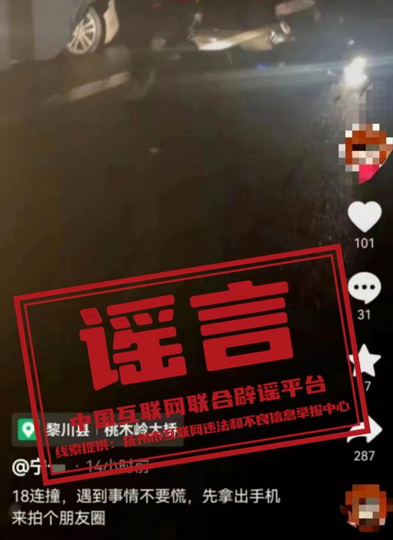 謠 言 江西黎川境內高速路段發(fā)生18車連撞重大交通事故?