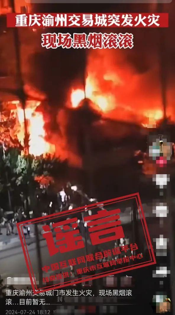 謠 言  重慶渝州交易城突發(fā)火災(zāi)?