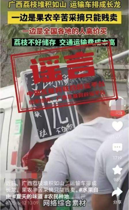 真相:6月12日,網(wǎng)傳“近日廣西荔枝堆積如山,運輸車排成長龍。果農(nóng)辛苦采摘只能賤賣”的視頻,畫面顯示荔枝堆積和“靈山荔枝1元”字樣。經(jīng)核查,視頻內(nèi)容并非發(fā)生在靈山縣。目前,靈山荔枝“妃子笑”等中熟品種逐漸批量上市,大規(guī)模上市時間為6月20日左右,當前荔枝產(chǎn)銷有序開展,并未發(fā)現(xiàn)個別媒體報道的“荔枝滯銷賤賣”“采摘堆積成山”“運輸車排成長龍”的情況,也沒有發(fā)現(xiàn)價格低到1元的荔枝出售。(來源:“廣西互聯(lián)網(wǎng)違法和不良信息舉報”微信公眾號)
