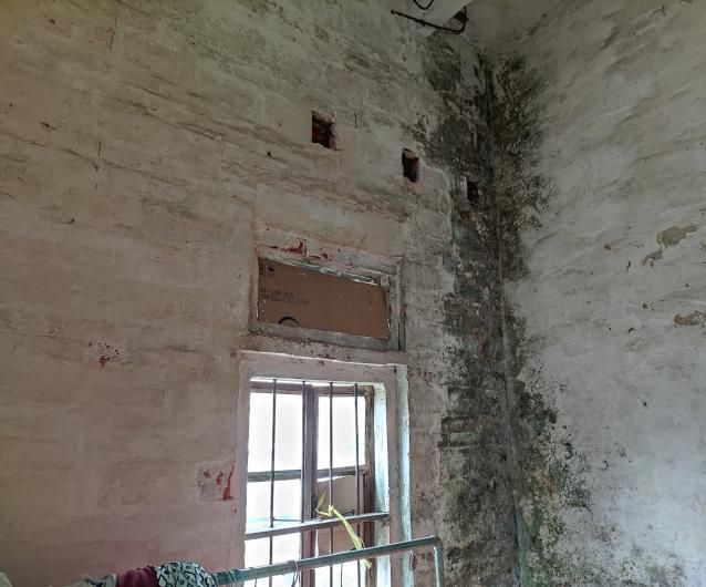 當(dāng)天下午,兩名向日葵社工來到了阿耿家中,阿耿看到社工的到來,仿佛看到了希望的曙光。阿耿家非常的破舊,是一幢年久失修的紅磚房,門窗都是木頭制成的,已經(jīng)破爛不堪。進(jìn)到房子里面,看到阿耿現(xiàn)在是把廚房用具搬到了客廳,本來就小的客廳顯得更加的擁擠。幾句寒暄過后,阿耿帶社工去到出現(xiàn)漏水情況的房間,一進(jìn)到房間,社工就發(fā)現(xiàn)房間墻身已經(jīng)出現(xiàn)了非常嚴(yán)重的發(fā)霉情況,甚至有部分墻壁還長出了青苔,阿耿說:“這已經(jīng)出現(xiàn)很長一段時間了,前段時間下雨,墻壁一直滲水,這個房間原本是我住的房間,因為滲水情況越來越嚴(yán)重,就搬到旁邊原來作為廚房的房間居住,而且窗戶的玻璃都已經(jīng)全部掉落了,現(xiàn)在這個房間已經(jīng)完全不能住人了?!卑⒐⒄f完,就告訴社工還有另一處漏水的地方??吹搅硪惶幝┧牡胤?,社工發(fā)現(xiàn)墻壁因長期滲水導(dǎo)致墻面剝落且墻體分離,到處都是霉斑。阿耿表示,這是漏水情況最嚴(yán)重的房間,房子的其他地方也出現(xiàn)了不同程度的漏水,隨后,阿耿把社工帶到客廳,把其他漏水的地方和情況也向社工反饋。社工看到阿耿現(xiàn)在居住在如此破爛的房子,不禁感到一陣酸楚,同時也跟阿耿商討著怎樣去解決漏水的問題。