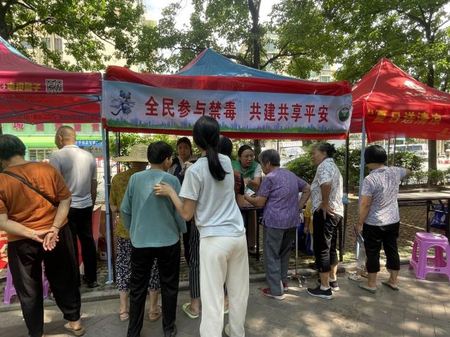 活動伊始,梁主席為活動致辭并給60余名外賣騎手送上夏日清涼飲料及防暑物資,對外賣騎手日常辛苦付出表達(dá)衷心感謝與深情慰問?;顒釉O(shè)置宣傳攤位,外賣騎手與居民群眾駐足攤位前,認(rèn)真聆聽、觀看。禁毒志愿者為大家耐心講解新型毒品的樣式及危害,并結(jié)合騎手配送場景,重點(diǎn)講解“毒駕”危害及可疑包裹識別技巧,強(qiáng)化職業(yè)群體防毒意識,同時警示騎手嚴(yán)守驗(yàn)視制度,若發(fā)現(xiàn)異常訂單,請立即通過“一鍵報(bào)警”功能舉報(bào),防止涉毒食品或物資流入消費(fèi)者手中,共同筑牢外賣配送禁毒防線。